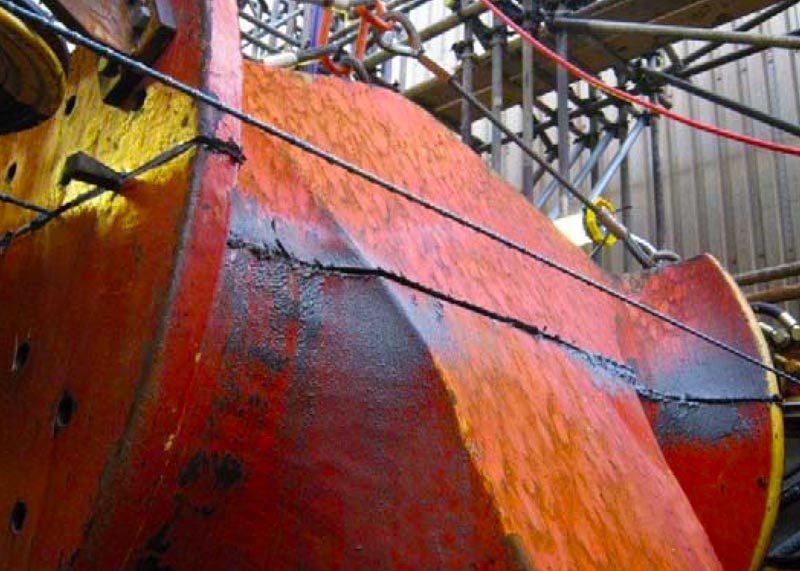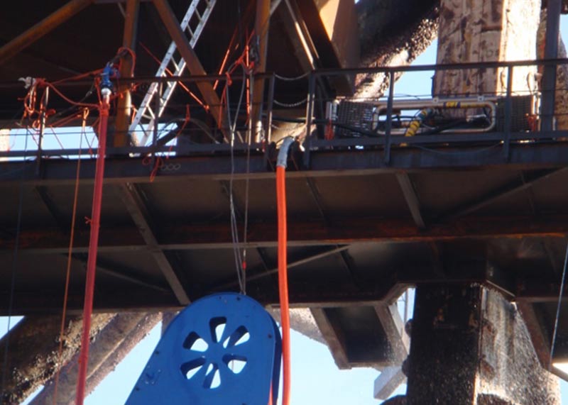 Prior to cutting, core drilling was carried out using a core drilling rig with electric core drilling motor for the installation of pipes and cables, anchoring bolts and load carrying devices. The DWC System selected for the cutting operation operates on the principal that the wire is passed round the target and field joined. The resulting looped wire is then run at a planned speed and pulled through the target from the inside of the leg.